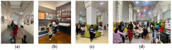 As an important indicator, C12 (Willingness to Participate), is not satisfied in the evaluation of both evaluators, especially for experts. Professionals feel that children’s heritage education activities in historic districts have increased in recent years; however, the frequency of activities, as well as the content and form of activities, require further strengthening. Conversations with children and their guardians, as well as field research, revealed that the majority of cultural exhibition spaces lacked creativity and interactivity, resulting in a low interest in children’s engagement. Some locations dedicated solely to children, such as children’s libraries, have restricted carrying capacity and uncomfortable facilities, limiting children’s involvement opportunities (Figure 8). As a result of these factors, children’s willingness to participate in cultural heritage education activities has not been effectively stimulated.