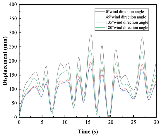 Comparison of displacement of four typical wind direction angles under fluctuating wind loads.