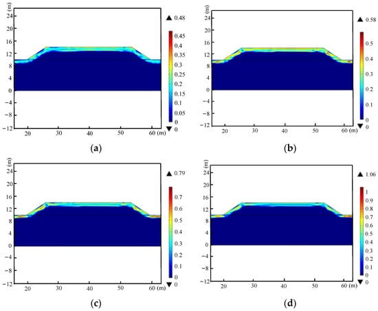 The roadbed’s GH bottom boundary was reinforced with fixed constraints, while its AH and FG side boundaries had roller support. The rest of the roadbed’s boundaries were free.