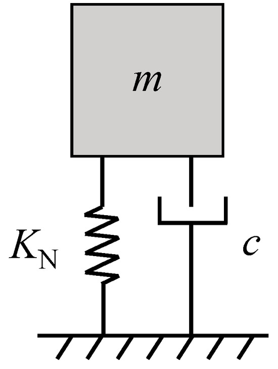 A single-freedom nonlinear vibration model integrating bolting looseness is established and shown in Figure 3, by assuming that the value of damping ratio and mass are constant while the stiffness varies nonlinearly. As shown in the figure, the vibration model consists of three parts: a single mass m, a spring with a nonlinear stiffness KN and a damper with a linear damper coefficient c. Under an external excitation with an amplitude F and a frequency v, the motion equation of the nonlinear vibration model is presented as follows: