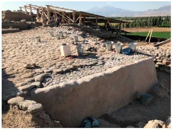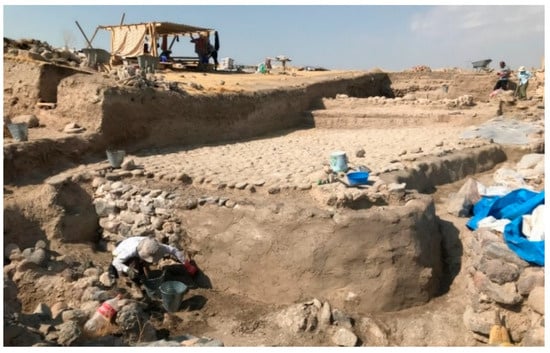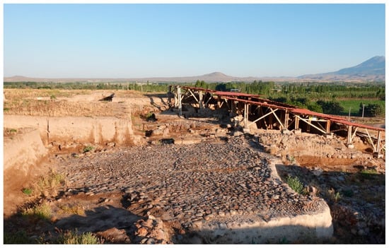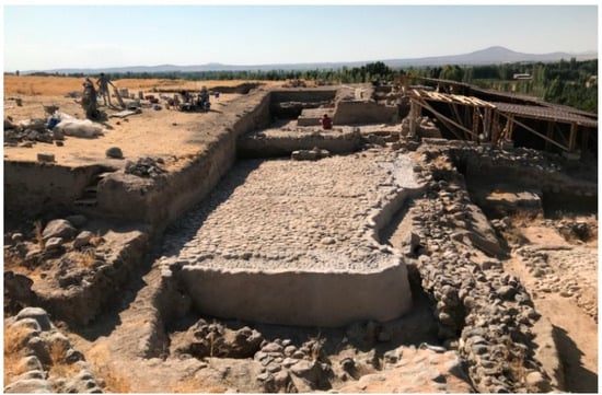 The whole question of the Hellenistic sacred cities of Central Anatolia is based on written sources, while archaeology has contributed very little evidence to it. In this respect, the excavation of the Hellenistic occupation at Kınık Höyük offers a new and, to date, unique case within the cultural heritage of Anatolia [9,17,18]. For this reason, the preservation of its archaeological remains represents an objective of primary importance for the current excavation project. The team of archaeologists, archaeometry experts, and restorers working at the Kınık Höyük research project have already treated several meaningful Hellenistic finds and have collaborated with the Niğde Archaeological Museum for their final location within the permanent collection exhibited at the museum [11,19]. From the very first campaign, a program on the preservation status of the architectural remains, tests on the composition and properties of the building materials, and sheltering of the excavation areas were implemented [12,20,21].