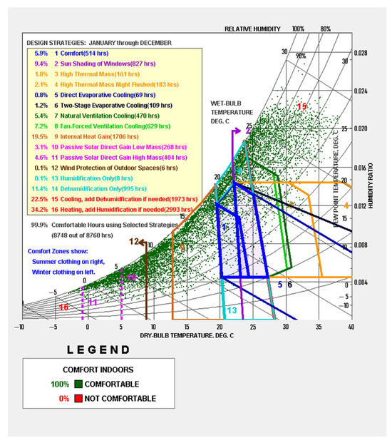 - Milne, M.; Liggett, R.; Al-Shaali, R. Climate Consultant 3.0: A Tool for Visualizing Building Energy Implications of Climates. 2007. Available online: https://energy-design-tools.sbse.org/papers/ASES07-CC.pdf (accessed on 7 July 2024).