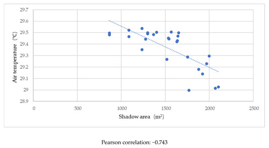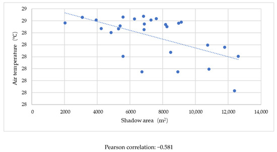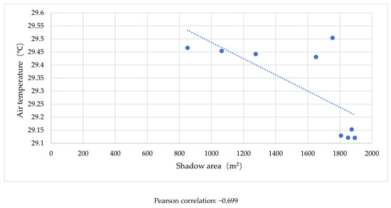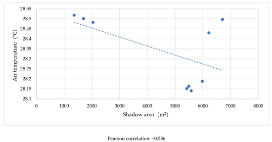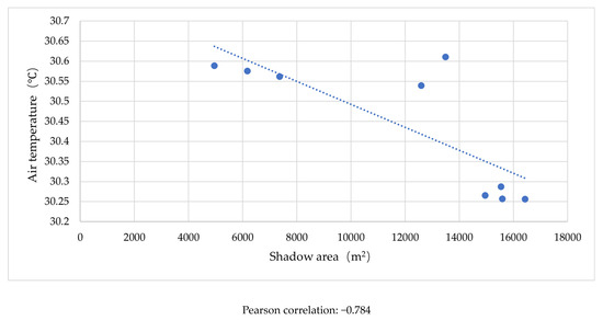 Air temperature and shadow area relationship at 10:00 in the building height and base area study.