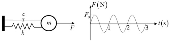 As depicted in Figure 2, the SDOF system comprises a linear spring with an elastic modulus of k, a linear viscous damper with a damping coefficient c, and a mass m. The sinusoidal load applied to the system had an amplitude of 1 N, with a period set to 1 s.