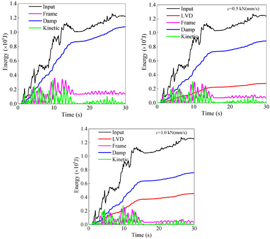 Energy dissipation of the frame equipped with LVDs of various damping coefficients.