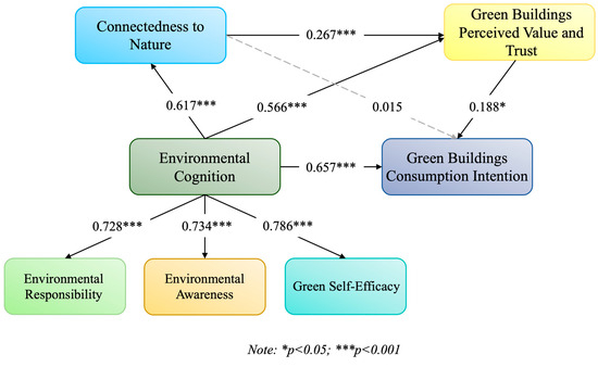 Natural connection and green building perceived value and trust as chain mediators between environmental cognition and consumption intentions in green building stadiums.