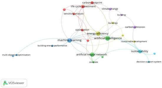 - The use of AI to minimize carbon emissions in construction projects is the second cluster of research. AI can be used to create smart energy networks and reduce energy costs [80]. By applying AI techniques, building energy and carbon footprints can be used to predict energy consumption and CO2 emissions [81,82,83]. Deep learning and ML are branches of AI techniques that are widely used as data analytics techniques for reducing NZCEs for sustainable building projects. For example, ANN has been used to quantify environmental costs in residential buildings and optimize commercial building design [84,85]. To achieve this goal, Palladino [86] studied the use of ANN in specific energy strategies in the Umbria Region. It has been reported that the application of ML can reduce the power consumption of buildings and help optimize building performance in the design and development of smart buildings [87,88].