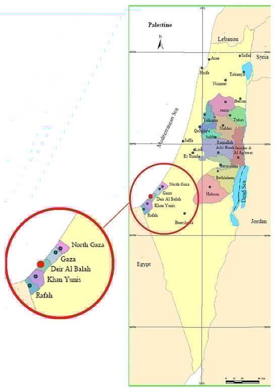 - PCBS (Palestinian Central Bureau of Statistics). Preliminary Results of the Population, Housing and Establishments Census 2017. Palestinian National Authority. 2018. Available online: https://www.google.com/url?sa=t&source=web&rct=j&opi=89978449&url=https://www.pcbs.gov.ps/portals/_pcbs/PressRelease/Press_En_Preliminary_Results_Report-en-with-tables.pdf&ved=2ahUKEwjj47TB-KWIAxXZzDgGHfq_Kd4QFnoECBgQAQ&usg=AOvVaw3SsQSs_ZEzYjwlQsQpYGgM (accessed on 1 August 2023).