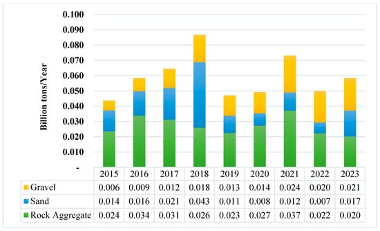 - Miatto, A.; Schandl, H.; Fishman, T.; Tanikawa, H. Global Patterns and Trends for Non-Metallic Minerals used for Construction. J. Ind. Ecol. 2017, 21, 924–937. [Google Scholar] [CrossRef]
