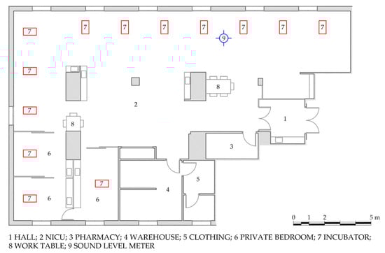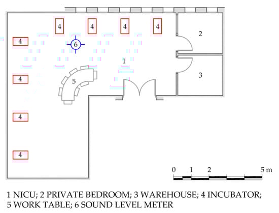 This research focuses exclusively on the noise levels of the NICU main room, identified in Figure 1 with the number 2.