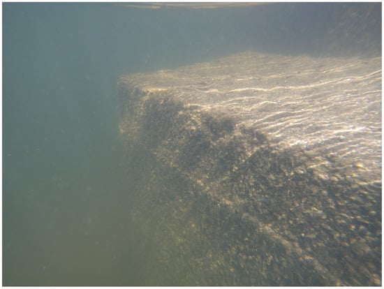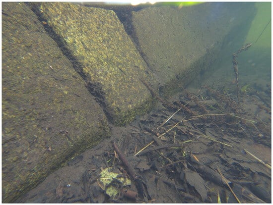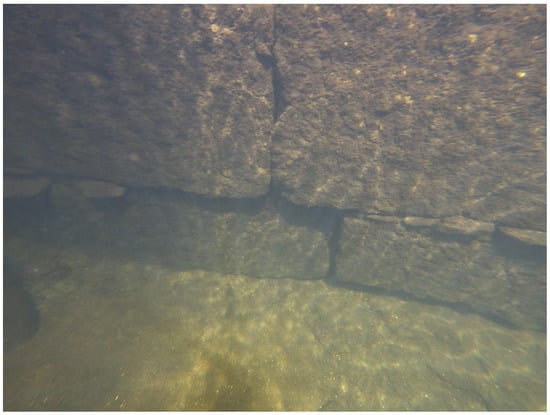 The underwater drone inspection of the submerged parts confirmed the correct state of the elements underwater: there were no missing granite ashlars, and the granite forming the submerged ashlars was in an adequate state of preservation. The presence of stone slabs in various joints between the ashlars and their appropriate location (