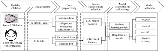 - Hong, S.; Kwon, H.; Choi, S.; Park, K. Intelligent system for drowsiness recognition based on ear canal electroencephalography with photoplethysmography and electrocardiography. Inf. Sci. 2018, 453, 302–322. [Google Scholar] [CrossRef]