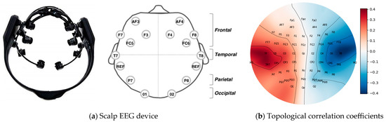 - EEG quantitatively reflects the brain’s electrical activity and offers an objective alternative to traditional survey-based assessments of mental states [25,26]. This non-invasive method measures voltage fluctuations from cortical neurons and has been widely used in research on mental load detection [27].