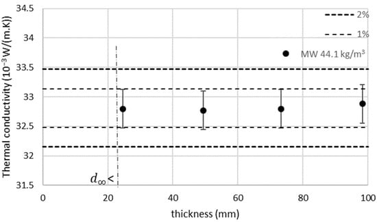 For mineral wool and EPS, according to the standard EN 12939 [], the thickness effect may be considered not relevant if (1 − L) ≤ 0.01. If the (1 − L) is above 0.01, an assessment of the thickness effect should be performed.