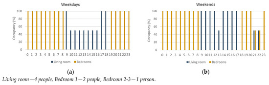 Occupancy schedule. (a) Weekdays; (b) weekends.