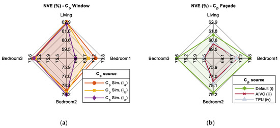 However, since a remaining problem in the effective use of AFN models is related to flow coefficients [23], one primary and two secondary sources are also considered in this study besides the default values (i) used in the E+ source code. Table 3 summarizes all the sources investigated, including values provided by the cloud-based platform [86] for three different terrain types regarding the wind velocity profile (iia,b,c), as well as secondary data from the AIVC database (iii) [64] and Tokyo Polytechnic University (TPU) database (iv) [67]. We chose these sources because they represent different alternatives applied in the BES-AFN investigations. They include both primary and secondary sources (CFD and database), consolidated over a longer timeframe (AIVC and TPU database) or released more recently (CpSimulator). Thus, it will be possible to observe the influence of these four sources when predicting NVE.