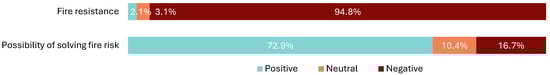 The synthesis of findings from the reviewed papers emphasises user perspectives and perceptions regarding the use of wood in construction, revealing a nuanced landscape of appreciation and scepticism. Users generally recognise wood’s aesthetic and environmental advantages, appreciating its ability to enhance well-being and contribute to ecological sustainability. Gold and Rubik outline a critical gap between the positive perceptions of wood’s aesthetic and environmental benefits and the persistent concerns about its practical attributes, such as fire resistance and durability. They highlight that while consumers appreciate wood for its ecological and aesthetic qualities, these factors alone are insufficient to drive more substantial changes in construction material choices [23]. Similarly, Larasatie indicates a general unfamiliarity with tall wood buildings but a slightly positive perception among those aware of them, especially concerning aesthetic and environmental attributes. However, concerns about fire risks and maintenance persist among the public, suggesting a need for more targeted communication to alter these perceptions [29].