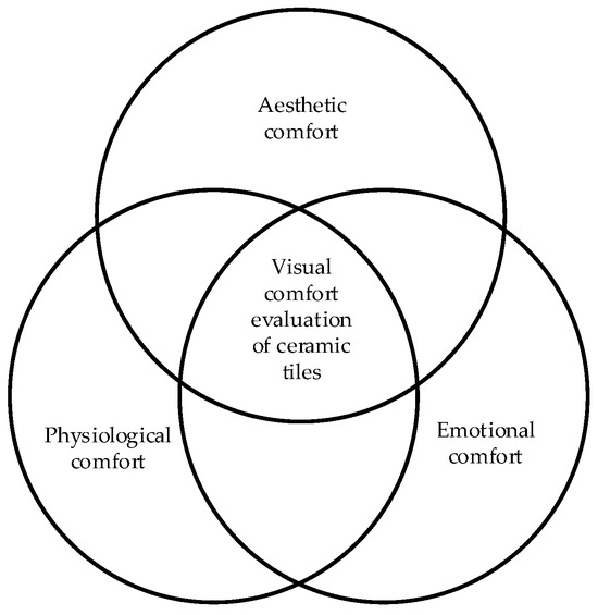 Physiological comfort resulting from the visual characteristics of an indoor environment is a crucial aspect of environmental comfort [31]. In this study, the physiological comfort dimension refers to the level of comfort experienced at a physiological level when people visually interact with ceramic tiles. Different ceramic tiles can elicit varying physiological comfort experiences. For instance, tiles that are excessively bright or cause significant glare may lead to eye strain and discomfort. Physiological comfort is a fundamental requirement, as when external elements cause physiological discomfort, aesthetic and emotional experiences become challenging to achieve. Therefore, physiological comfort is a critical dimension for evaluating the visual comfort of ceramic tiles.