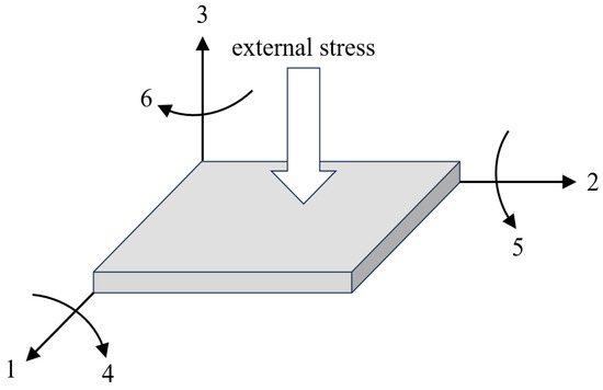 Polarization diagram of piezoelectric material. (1, 2, 3 are three directions of normal stress of piezoelectric material, 4, 5, 6 are three directions of shear stress).