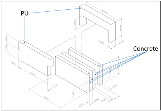 Simplied geometry of the block showing concrete and insulation parts.