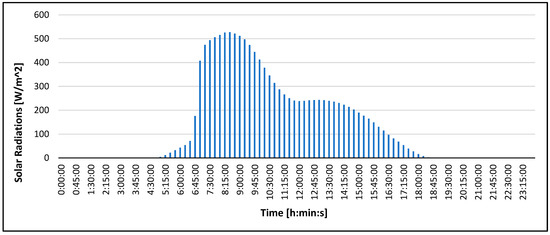 - Solar radiation (W/m2).