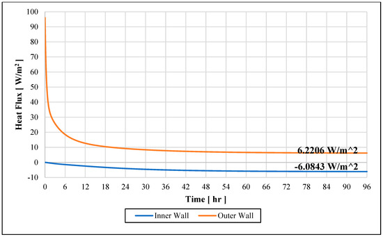 - The convective heat flux on the inner wall surface qin (W/m2) was obtained from the temperature difference between the inner wall and the inner ambient air from the experimental data using the following formula:where hin = 5 W/m2 °C [Figure A12].