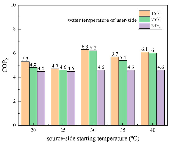 Changes in COP2 of water-source heat pump.