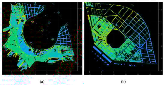 Figure 4, represents a multistorey structure with elevations ranging from −3.81 m to 11.46 m. Given RANSAC’s effectiveness with noisy datasets [
