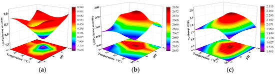 Effect of temperature and pH on MICP reaction: (a) water absorption; (b) apparent density; (c) mass change.