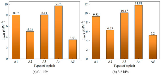 Figure 7 shows the calculation results of the irreversible creep compliance of the five types of asphalt.