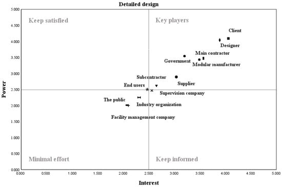 The power–interest matrix at the detailed design stage.