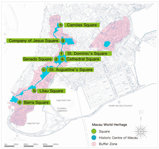 Since its inclusion as a World Cultural Heritage site in 2005, the Historic Center of Macau has garnered continual attention, particularly in terms of its spatial configuration, architectural characteristics, and cultural promotion activities. The ‘Outline Development Plan for the Guangdong–Hong Kong–Macao Greater Bay Area’, released in February 2019 by China, underscores Macau’s historical urban significance and its unique historical heritage, marked by a rich and diverse cultural coexistence. As defined by the United Nations Educational, Scientific, and Cultural Organization (UNESCO), world heritage sites are categorized into natural and cultural heritages, the latter being further subdivided into monuments, architectural works, and sites. The United Nations General Assembly’s ‘2030 Agenda on Sustainable Development’, adopted in 2015, integrates the protection of cultural and natural heritages, advocating for interaction with nature and the essential necessity of maintaining a balance between them [1]. Macau’s Special Administrative Region’s Law No. 11/2013 on Cultural Heritage Protection mandates the implementation of suitable measures to ensure the compatibility of policies fostering economic growth and social advancement with those safeguarding cultural heritage. This approach is intended to promote comprehensive, harmonious, and sustainable development in Macau. It also encourages systematic data collection and facilitates access for Macau’s residents, interested parties, and related international organizations to such information [2].