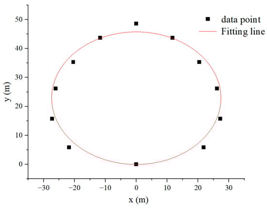 where the goodness-of-fit test index of the curve fitting was R2 = 0.99719; and the semi-major and minor axes a and b were 27.42 and 22.86, respectively.