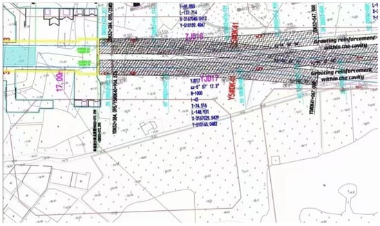 The Nanchang Metro Line 2 project, planned to extend along Guangzhou Road, proposes a scheme for vertically crossing under Tianxiang Avenue and establishing the Nanchang East High-Speed Railway Station beneath it, as illustrated in Figure 5. The construction area primarily encompasses farmland and wasteland designated for urban road usage in the planning. Additionally, there is an approximately 100 m long parallel section above and below Line 2 and Line 5 after Hufan Station, with Line 5 being constructed first, followed by the development of Line 2. The tunnel design incorporates an assembled circular lining structure, utilizing common ring segments with an inner diameter of 5400 mm and an outer diameter of 6000 mm, and implementing interlocking assembly technology.