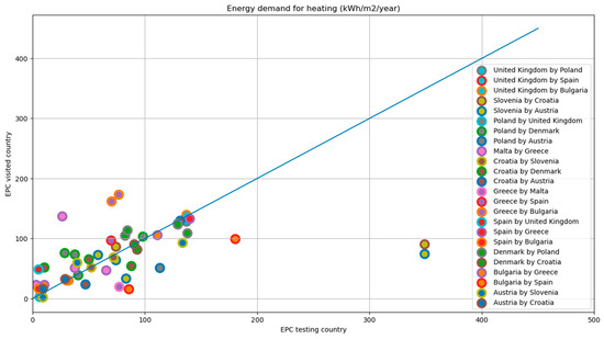 Building energy consumption is usually associated with well-defined categories for heating, cooling, ventilation, domestic hot water, lighting, and appliances. Whilst heating, ventilation, and hot water are included as categories for all EPCs involved in this study, there are differences that make direct comparison of EPC outputs difficult. Lighting energy use is not considered in the EPC rating in Croatian, Polish, and Spanish residential EPCs—and in Denmark, only the lighting in the communal parts of multi-family homes is considered. Electrical appliances’ energy consumption is not considered in the EPC rating in most studied countries, with the exception of Bulgaria (all buildings) and Austria (non-residential). Of the ten countries studied, the UK and Austria were the only ones where cooling was not included within EPC ratings for residential buildings—though an informal calculation is documented in the appendices of the UK methodology [12].