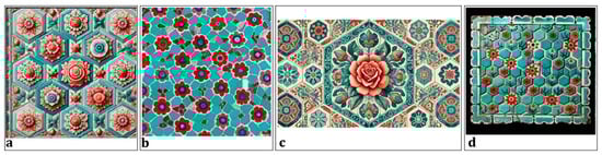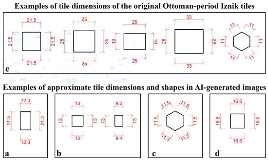 Figure 16c). In a Midjourney-produced image, the panel consisted of 13 cm square tiles and 13 × 9.4 cm rectangular tiles (