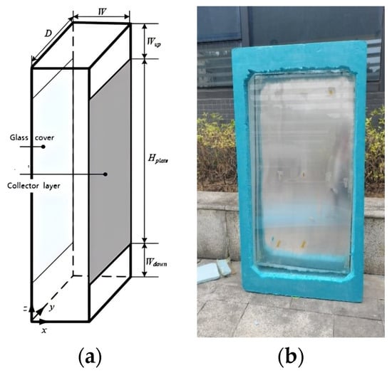 (a) Theory structural of traditional Trombe wall model, and (b) structure of traditional Trombe wall model in practice.