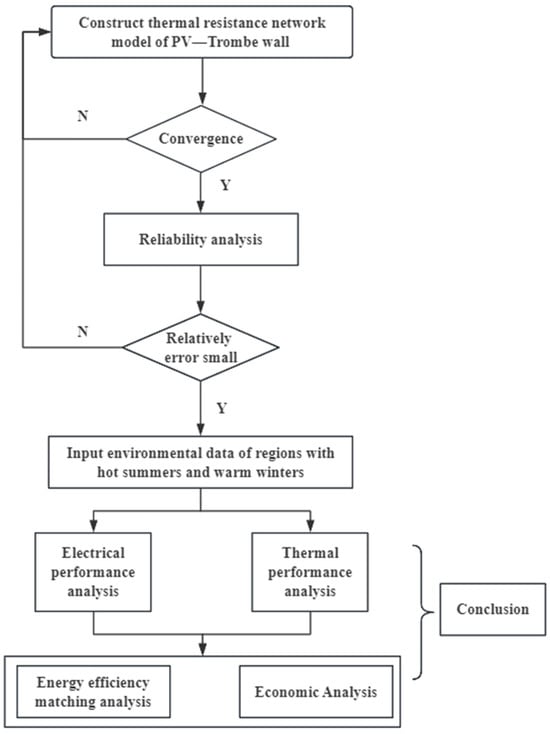 For the purpose of gaining an in-depth understanding of the energy efficiency matching mechanism of PV—Trombe walls in hot summer and warm winter regions in terms of solar light and heat utilization, as well as to analyze their promotion and application potential, the analysis process outlined in this paper is intended to proceed as follows. Firstly, an analysis network will be structured, subsequently establishing a theoretical analysis model and conducting its reliability validation. Secondly, separate parametric analyses will delve into the electrical and thermal performance of the system to pinpoint the optimal model configuration. Lastly, focusing on the application potential, targeted optimizations will be implemented across both aspects, coupled with an assessment of the system’s economic benefits to ensure maximum efficacy.