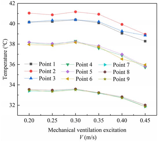 Temperature of collector plate under different mechanical ventilation excitations.