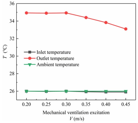 Ambient/inlet/outlet temperature under different mechanical ventilation incentives.