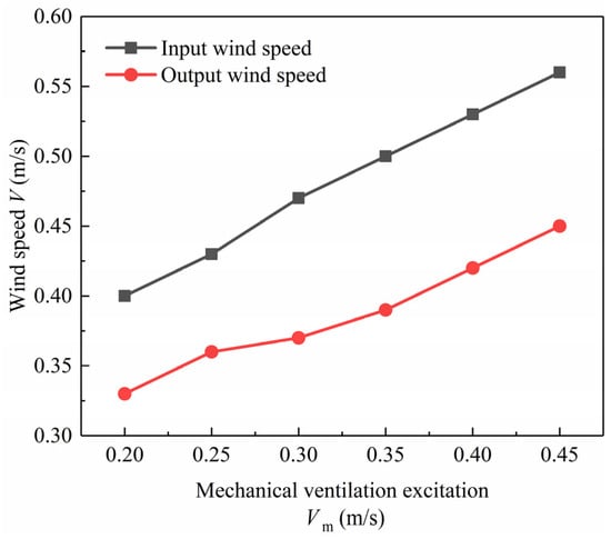 Wind speed of inlet/outlet under different mechanical ventilation incentives.