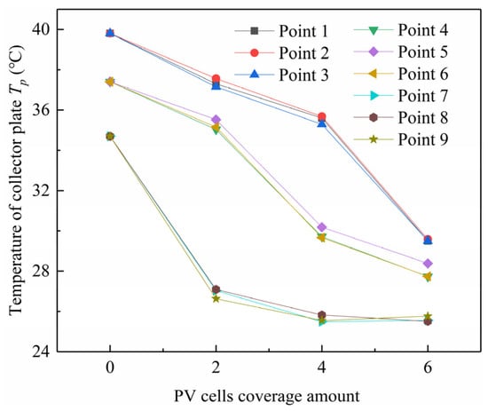 Temperature of collector plate under different PV panel coverage amounts.