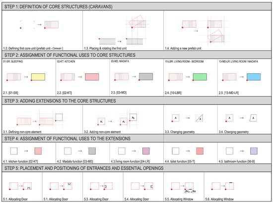 - Abu-Aridah, D.; Henn, R.; Duarte, J.P. Using Shape Grammar as an Analytical Tool for Shelters in Protracted Refugee Camps: The Zaatari Camp Grammar. 2024; in press. [Google Scholar]