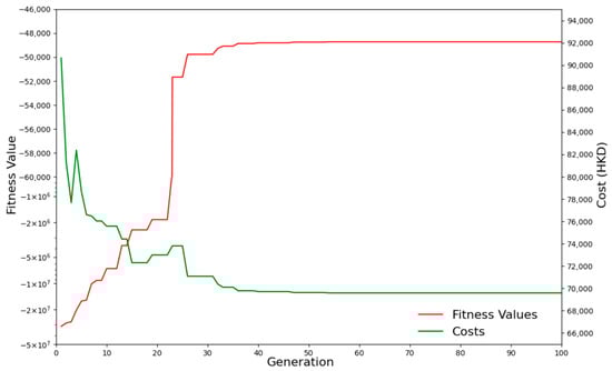 - The TSGA enhances the interpretability of fitness functions. The fitness functions in both stages of the algorithm evaluate the mechanical performance of beam–slab structures as the criterion for judging their quality. Such an approach offers a more intuitive and accurate assessment than conventional methods that rely on geometric features.