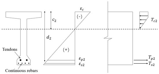 After the joint is cracked, the bending normal stress originally borne by the epoxied joint is transferred to the continuous rebar. The sectional model of joints is shown in Figure 21.