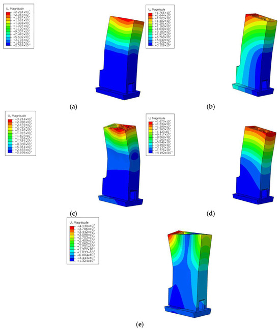 The first to fifth modes of vibration of the intake tower structure. (a) First mode of vibration, (b) second mode of vibration, (c) third mode of vibration, (d) fourth mode of vibration, (e) fifth mode of vibration.