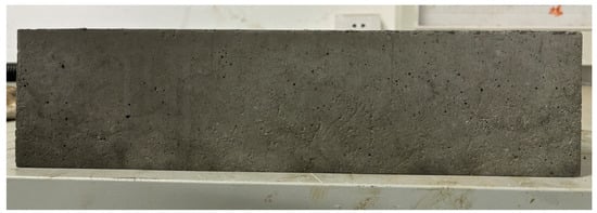 The machine used for concrete mixing was a single-shaft concrete mixer, model HJW-60. The mixing process involved first adding the coarse aggregate along with half of the cement and half of the water, and mixing for 1 min. Then, the remaining fine aggregate, fly ash, cement, and water were added and mixed for an additional 1.5 min. Finally, the mixture was placed into molds. The concrete samples measured 100 mm × 100 mm × 400 mm, as shown in Figure 3. The concrete specimens were cured in a standard curing chamber, model SHBY-60B, at a temperature of 20 °C and a humidity of 95% for 28 days before undergoing the freeze–thaw cycle test.
