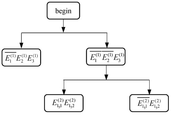 Because threshold selection results in the omission of important components and of many failure paths, a method based on collectively exhaustive events is proposed to reduce the influence of threshold selection. Collectively exhaustive events for the selected components were established to reduce the need for repeated calculation of reliability and to improve computational efficiency. The set of collectively exhaustive events is derived from the total probability formula []. In the classical scheme, the whole set of basic events is equivalent to the set of collectively exhaustive events, and these events are mutually exclusive. Consequently, this method can simplify the calculation.