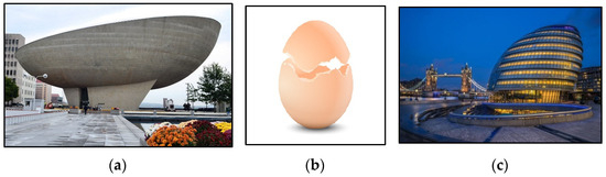 (a) The Egg Theatre, New York; (b) Eggshell; and (c) City Hall, London [5].
