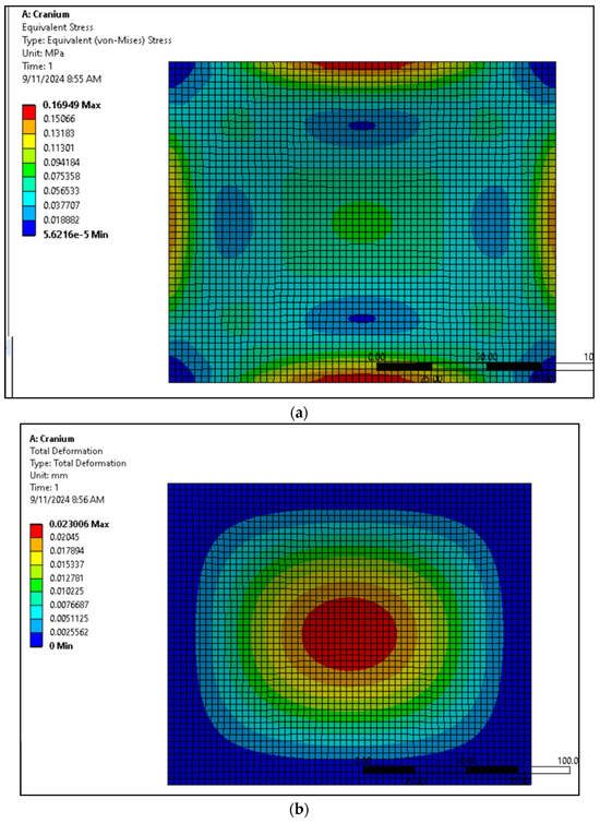 Analysis of cranium: (a) equivalent stress and (b) displacement.